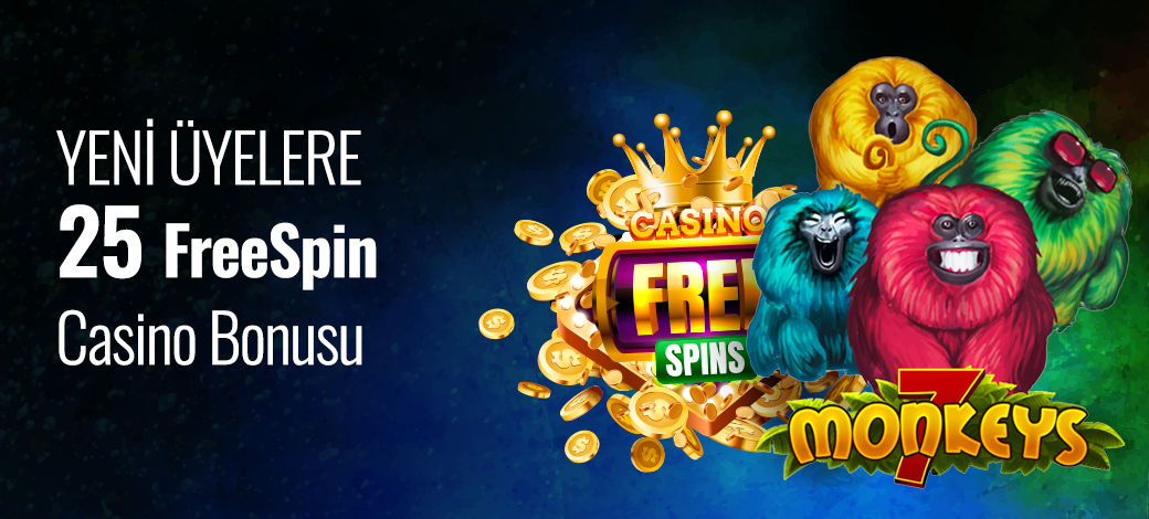 - 25 FreeSpin Casino Bonusu ve kazançlarınızı sadece PRAGMATIC PLAY sağlayıcısında bulunan "7 Monkeys" oyununda kullanabilirsiniz. Aksi durumda bonus ve kazancları iptal edilerek promosyon hakkınız iptal edilecektir.